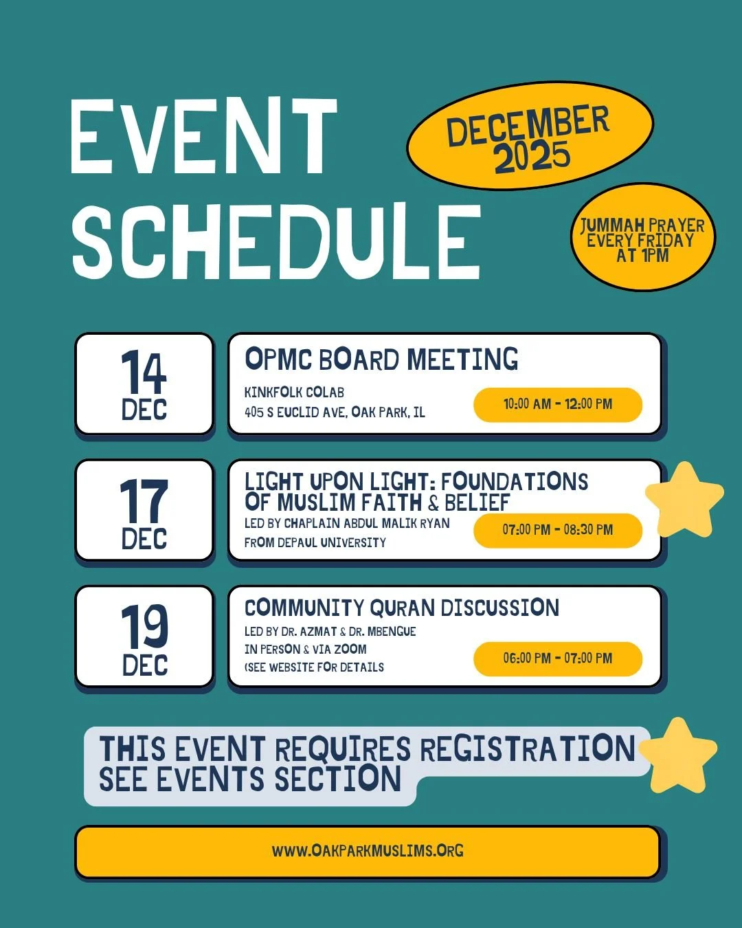 OPMC December Events BECOME A MONTHLY DONOR “The believer’s shade on the Day of Resurrection will be his charity.”— Prophet Muhammad ﷺ (Jamiʿ at-Tirmidhi, 604)
